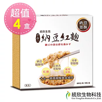 【統欣生技】納豆紅麴禮盒(60粒-5瓶-盒)-4入