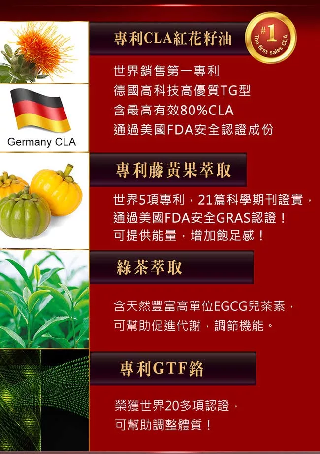 嚴選世界銷售第一專利紅花籽油CLA(Tonalin®),德國高科技製造,通過美國FDA安全認證成分!